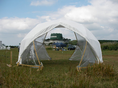 組立前は、とてもコンパクト(軽自動車に積めるほど)です。設営時には大きな空間が目の前に現れます。