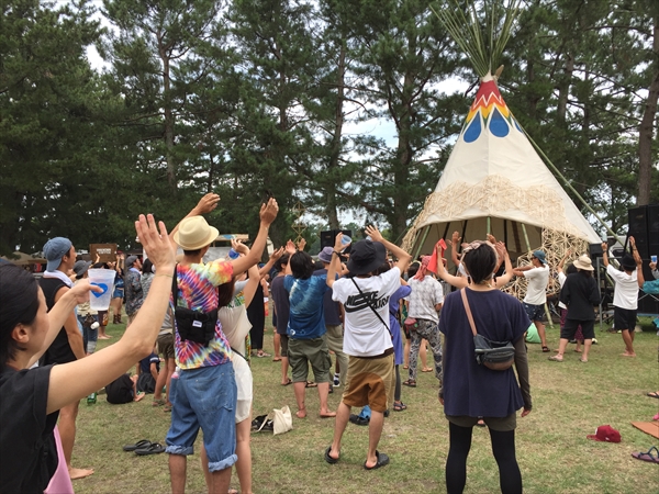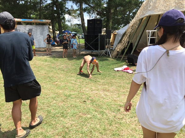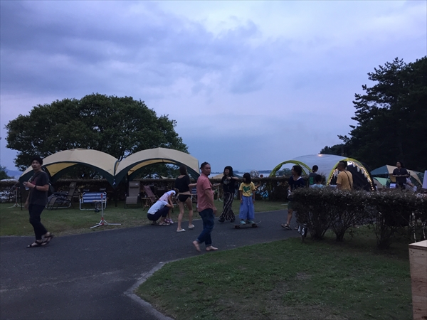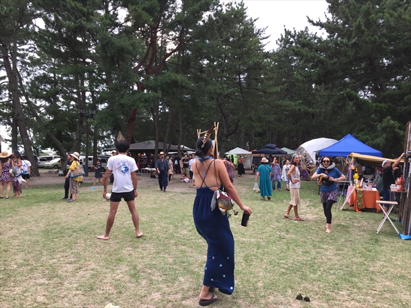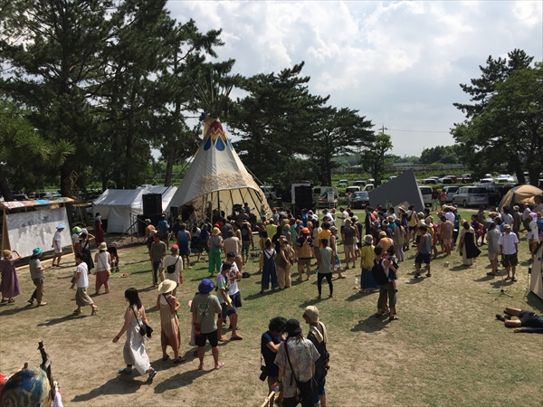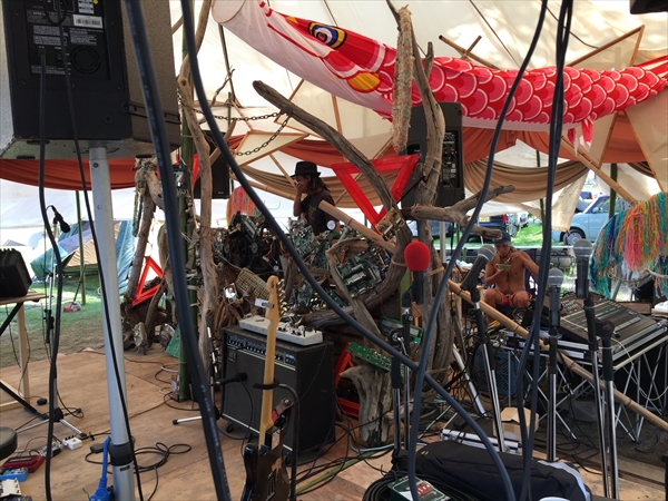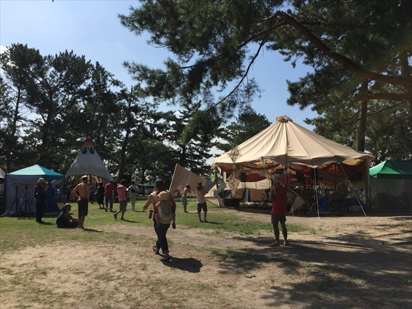イベント本番早朝に目を覚ますと、会場には多くの参加者であふれ、一夜にして小さな村が出来上がっていました。こういった野音系のおまつりではよくある光景ですが、誰かが仕切るのではなく、参加者が自主的に周りと協調しながら、自然とコミュニティが形成されていく様子はまるで一つの生き物のようです。