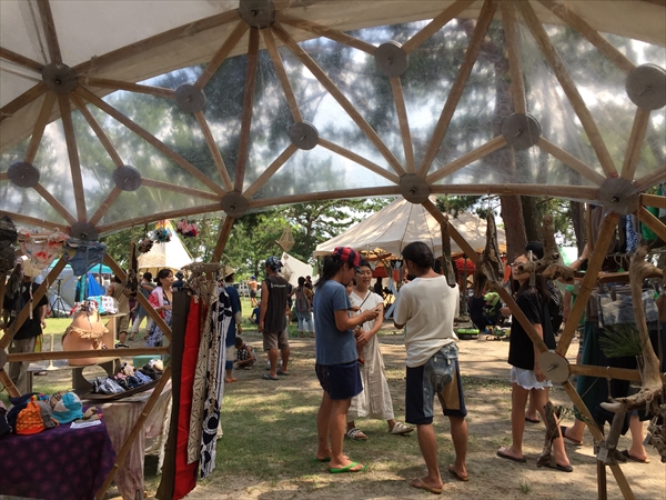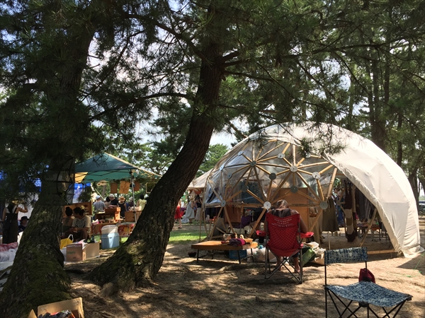 以前からとても面白いイベントだという噂は聞いていたものの、2年に一度しか開催されないというちょっと珍しい開催スタイルという事やドームレンタルなどのスケジュールの都合で、これまで参加できずにいた水と木の祭り。今年はちょうどスケジュールが空いていた為、日球ドーム(ASANOHA ver.)をSHINZOUの出店ブースとして設営しました。