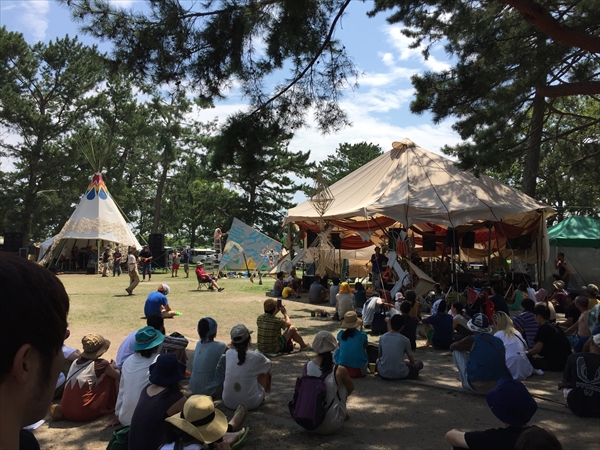 日本一大きな湖である琵琶湖東岸にあるオートキャンプ場に、大小様々な6つのステージが設置されるというとても大きなスケールのイベントで、全国津々浦々からたくさんの出演者、出店者が大集結!