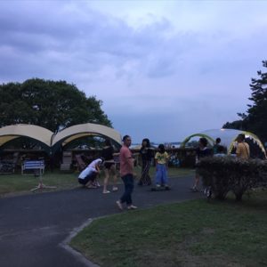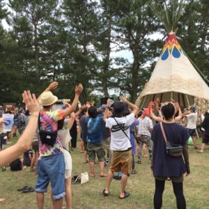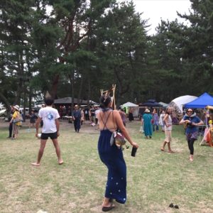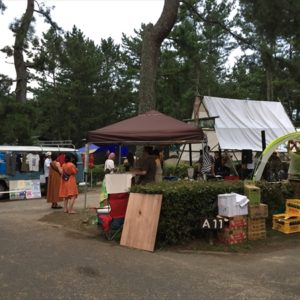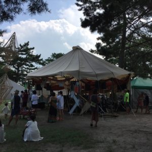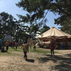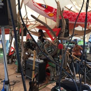 イベント本番早朝に目を覚ますと、会場には多くの参加者であふれ、一夜にして小さな村が出来上がっていました。こういった野音系のおまつりではよくある光景ですが、誰かが仕切るのではなく、参加者が自主的に周りと協調しながら、自然とコミュニティが形成されていく様子はまるで一つの生き物のようです。