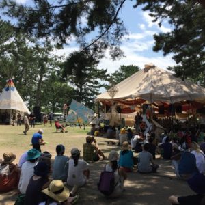 日本一大きな湖である琵琶湖東岸にあるオートキャンプ場に、大小様々な6つのステージが設置されるというとても大きなスケールのイベントで、全国津々浦々からたくさんの出演者、出店者が大集結!