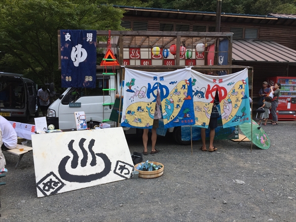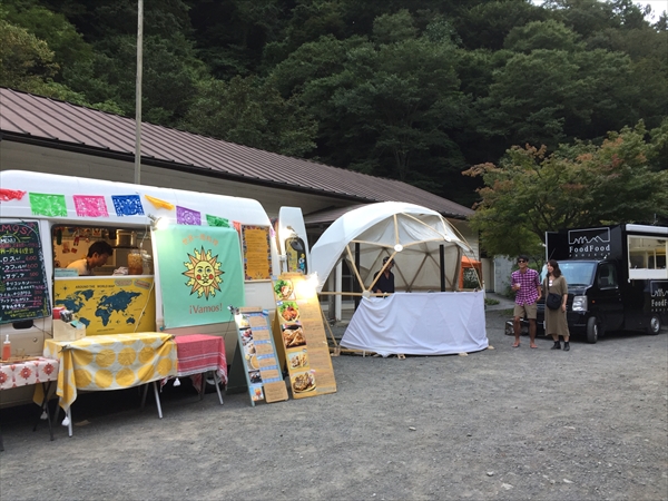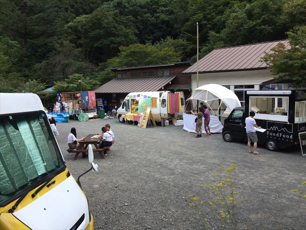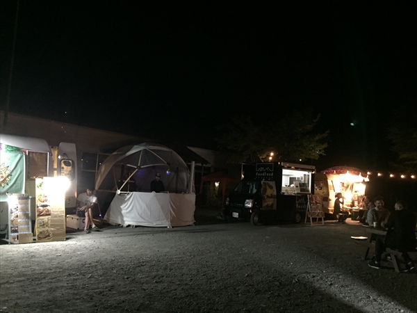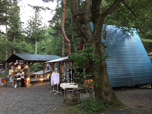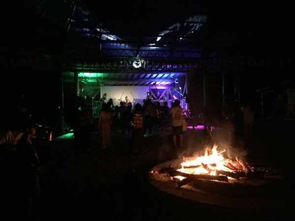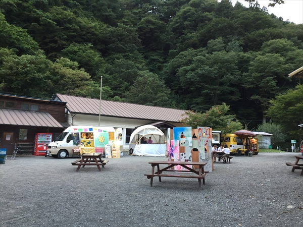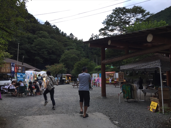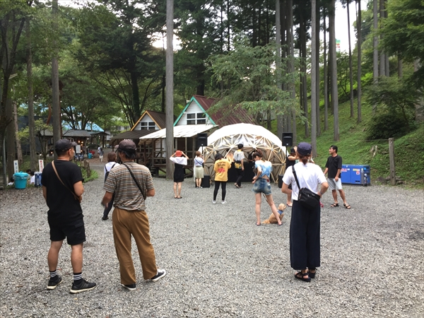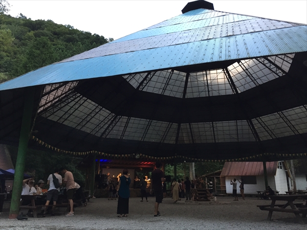これまで小菅村というと何度も日球ドームを使ってくれたことがある秘境祭が行われていた玉川キャンプ村の印象が強かったのですが、今回の会場となった平山キャンプ場はその隣にあり、敷地内を流れる渓流に沿って三角屋根のコテージが綺麗に並び立ち、大きなトンガリ屋根のあるステージを完備するなど、充実した設備と気持ちのいいロケーションは玉川キャンプ村に負けず劣らず。秘境祭が今年から別の会場に移っても小菅村に呼ばれる事になんだか不思議なご縁を感じずにいられません。