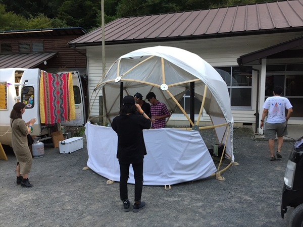 2019年9月7~8日、山梨県小菅村の平山キャンプ村にて開催されたYABITO FESTIVALにて、2台の日球ドームを設営してきました。