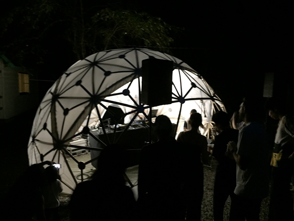 前日の夜に会場入りし、本番初日の早朝から2台のドームを設置を進めました。