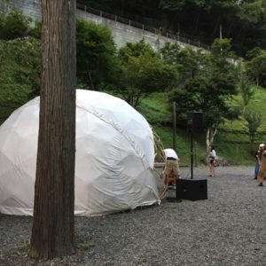 2019年9月7~8日、山梨県小菅村の平山キャンプ村にて開催されたYABITO FESTIVALにて、2台の日球ドームを設営してきました。