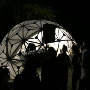 前日の夜に会場入りし、本番初日の早朝から2台のドームを設置を進めました。