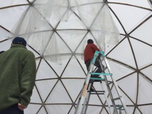 今回のSBIワークショップは、昨年11月のIdeWorkParkでのSBIワークショップから引き続いて、RAINBOW CHILD 2020実行委員会のメンバーや、新たに飯地高原自然テント村の管理人や従業員の方も加わり、前回よりも一回り大きな6.0m/3Vドームの設営と撤去のノウハウを伝授、6人の参加という事もあり、非常にスムースに各工程を進めることができました。