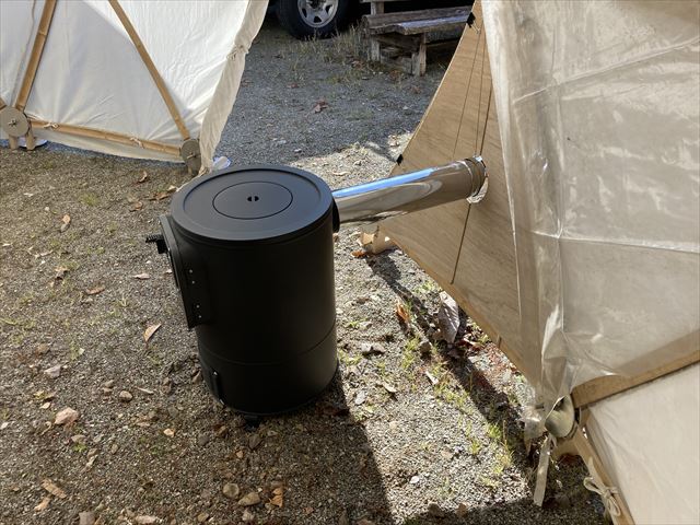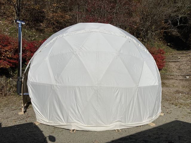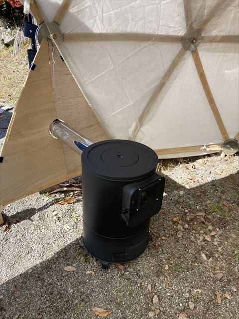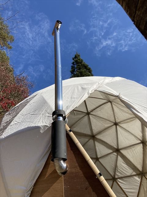 実はこの週末14・15日は、神奈川県で開催されたBLACK TEARSという音楽イベントに6.0mドームレンタルで出かけなくてはならず、実際にストーブを付けた状態は自分自身が直接体験できませんでした。ボンボンに薪を燃やさなくても十分暖かかったという話しでしたが、できればそれも実感したい所でした。