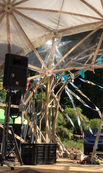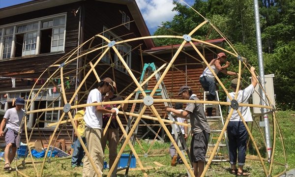 大開口仕様を実現する為には、開口部分周囲はもちろんの事、その他にも全体的にフレームテンションを強くかける必要性を感じ、ひとつ前の画像の下半分のように赤や青の位置に竹を2重にした補強フレームを配置するという構想の下、今年の1月~3月にかけてレンタルで使用しているラインナップの各サイズ毎に補強フレームを試作し、3月に3.6mPLUS、4月に4.8m、5月に6.0m、そして9月に7.2mでの大開口仕様の検証を実施しました。