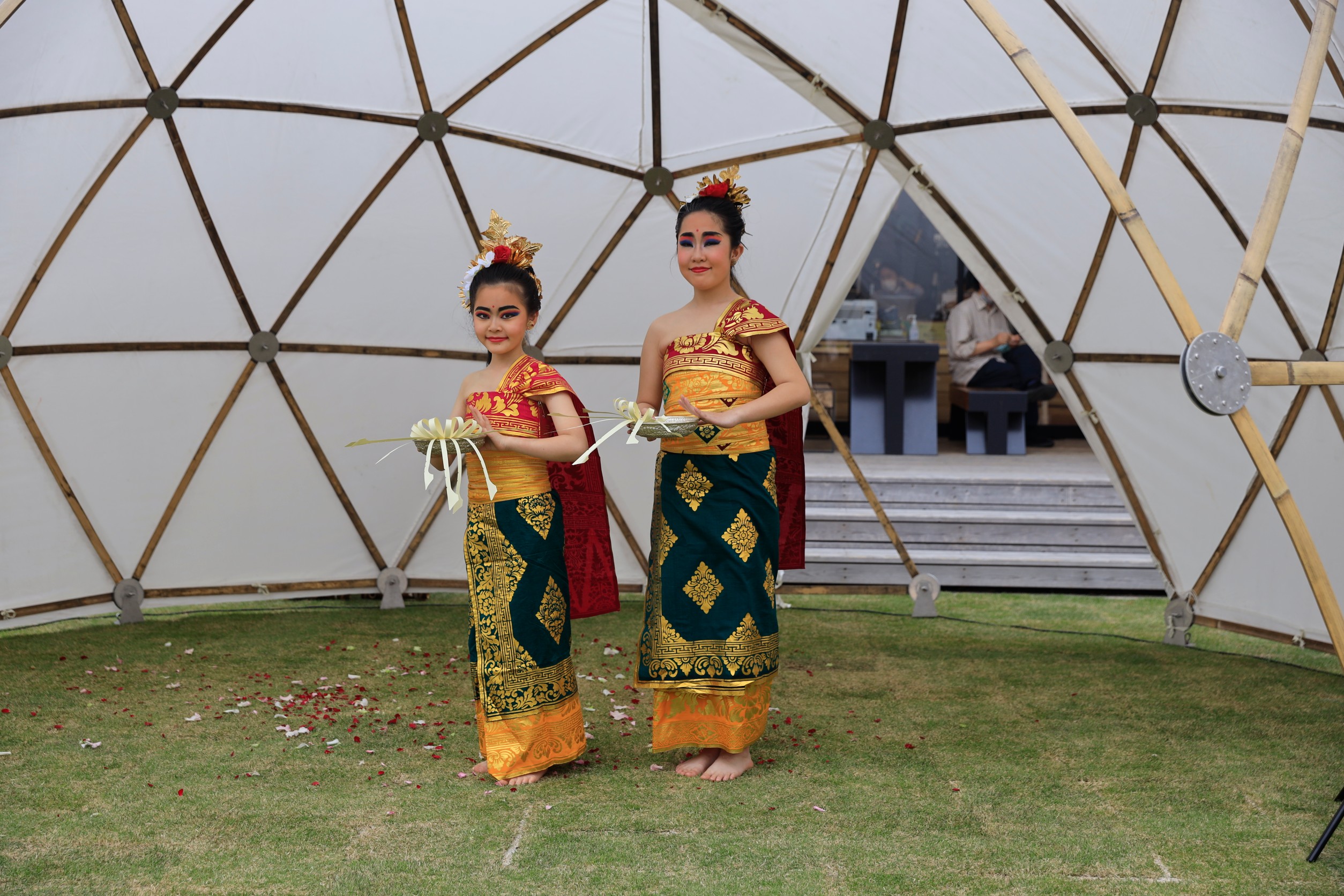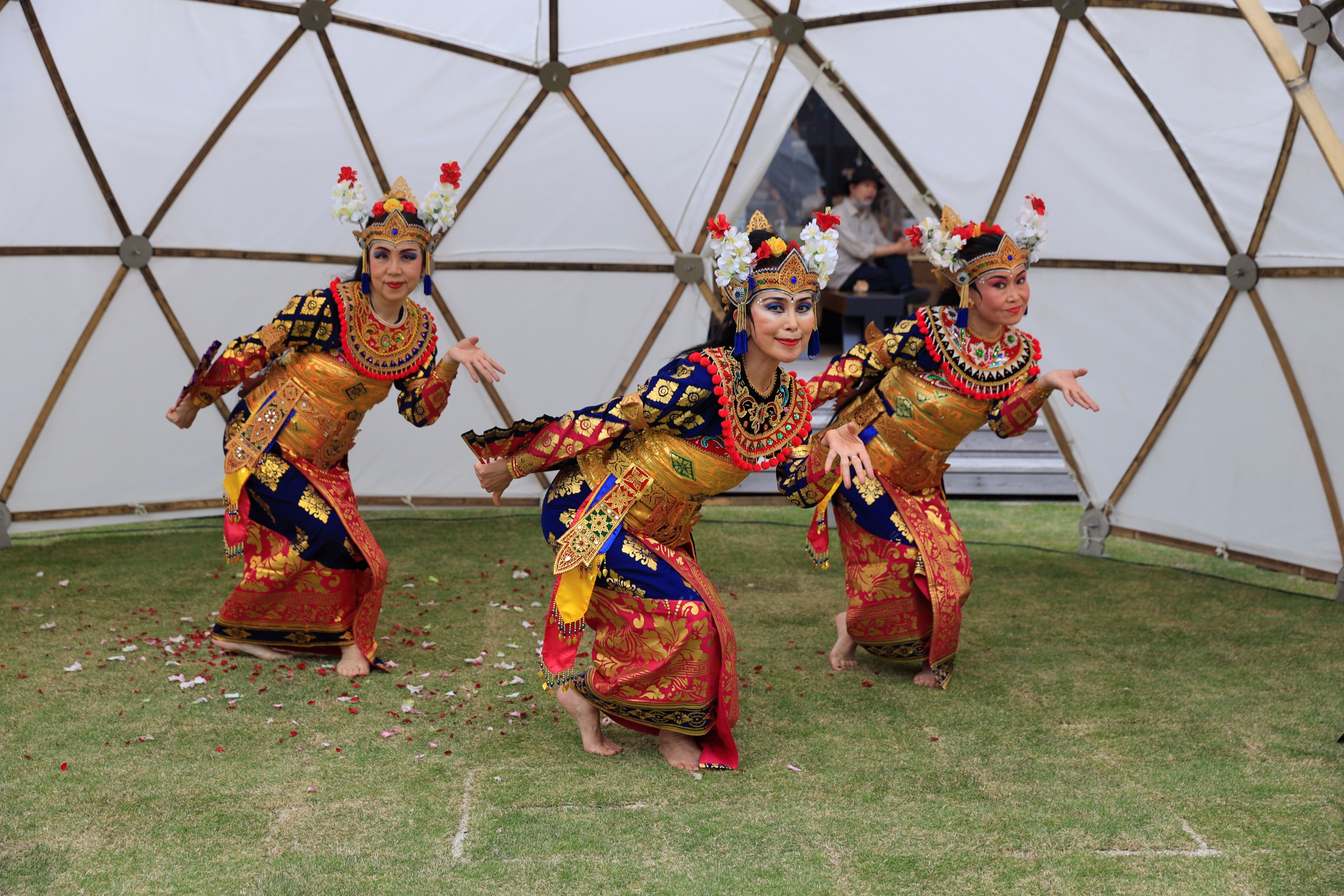 それほど広い敷地ではないのですが、オシャレな日よけブースに美味しいごはんやお菓子や地元野菜、子供向けのゲームコーナー、なんと足湯まで、バラエティに富んだ出店者が並び、ドームのステージ前でアフリカンドラムのワークショップやバリの音楽や舞踊の演目、ライブなど一日を通して様々なコンテンツが程よいタイミングで散りばめられていました。