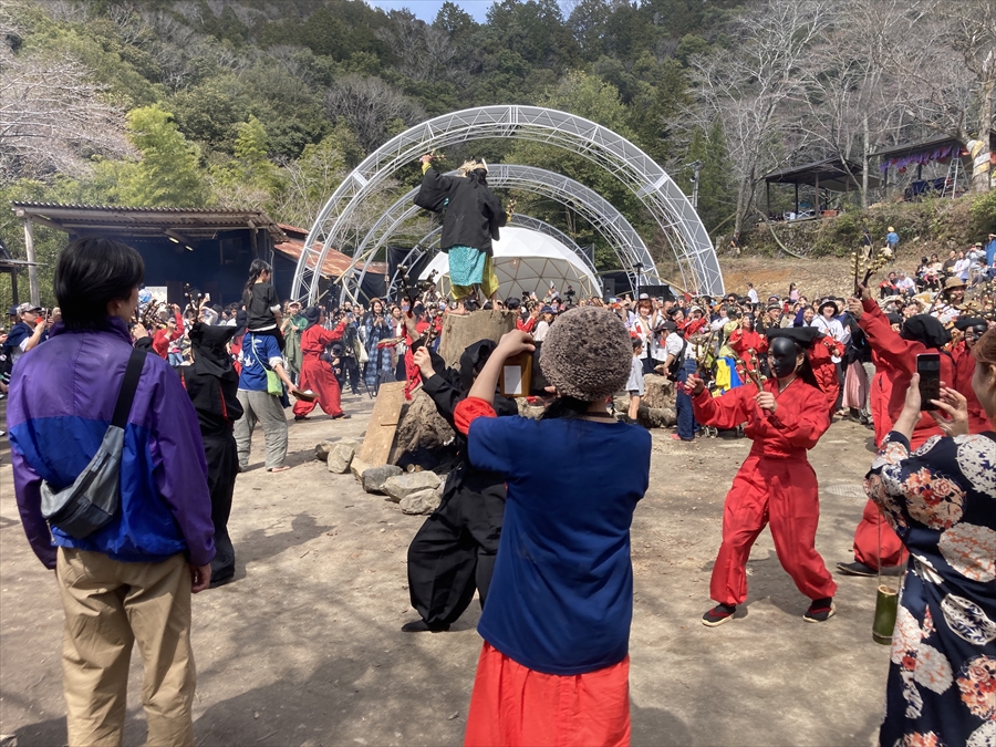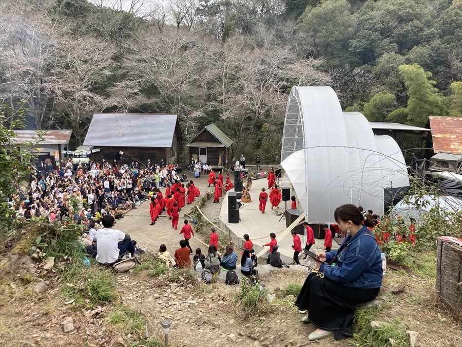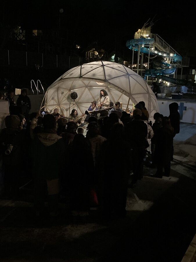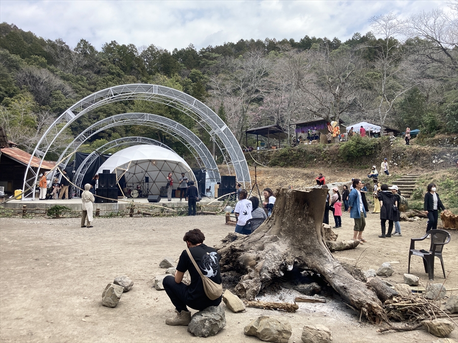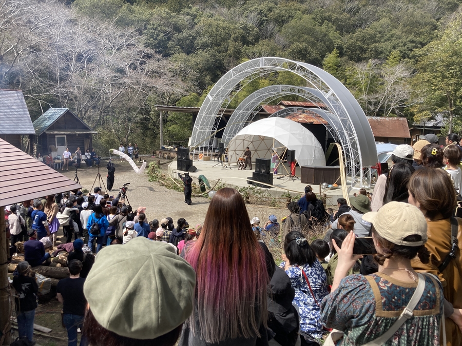 ステージの演目もこれまではあまり世に出てくる事がなかった山蔭古神道第80世の表博耀氏による創生神楽から、世界をまたにかけるタキオンミュージシャンKENTA HAYASHIや沖縄県出身HIPHOPラッパーOZworldまで、バラエティに富んだアーティスト達が揃い、偶発的に巻き起こる弥栄の声。季節的にもちょうど桜の開花が重なり、会場はカオスながらも何ともおめでたい雰囲気に包まれていました。