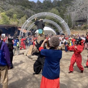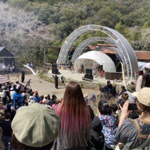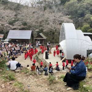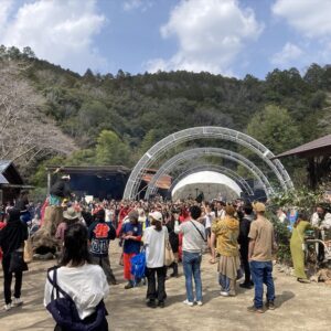 ステージの演目もこれまではあまり世に出てくる事がなかった山蔭古神道第80世の表博耀氏による創生神楽から、世界をまたにかけるタキオンミュージシャンKENTA HAYASHIや沖縄県出身HIPHOPラッパーOZworldまで、バラエティに富んだアーティスト達が揃い、偶発的に巻き起こる弥栄の声。季節的にもちょうど桜の開花が重なり、会場はカオスながらも何ともおめでたい雰囲気に包まれていました。