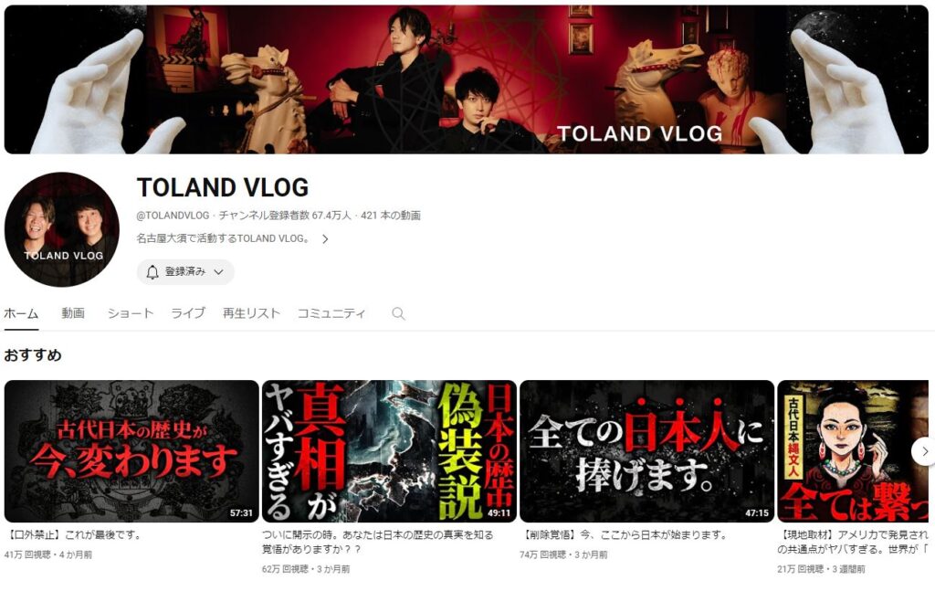 唐突ですが、皆さんはTOLAND VLOGというYoutubeチャンネルをご存知でしょうか?