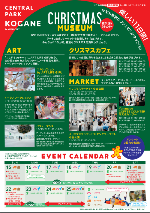 イベントの開催期間は12月15~25日。期間中はアート展示やマーケット・カフェの出店などの企画が予定されています。