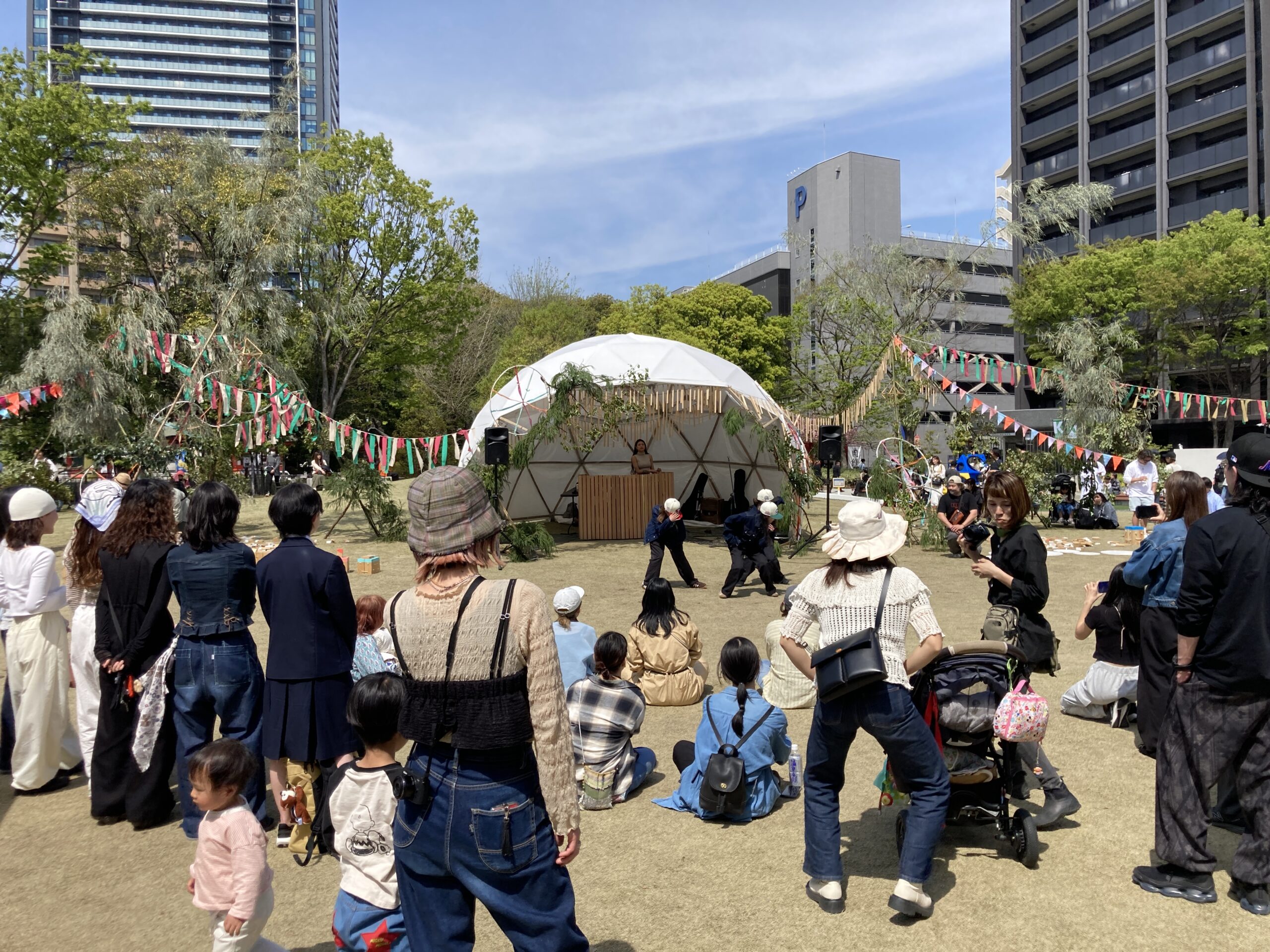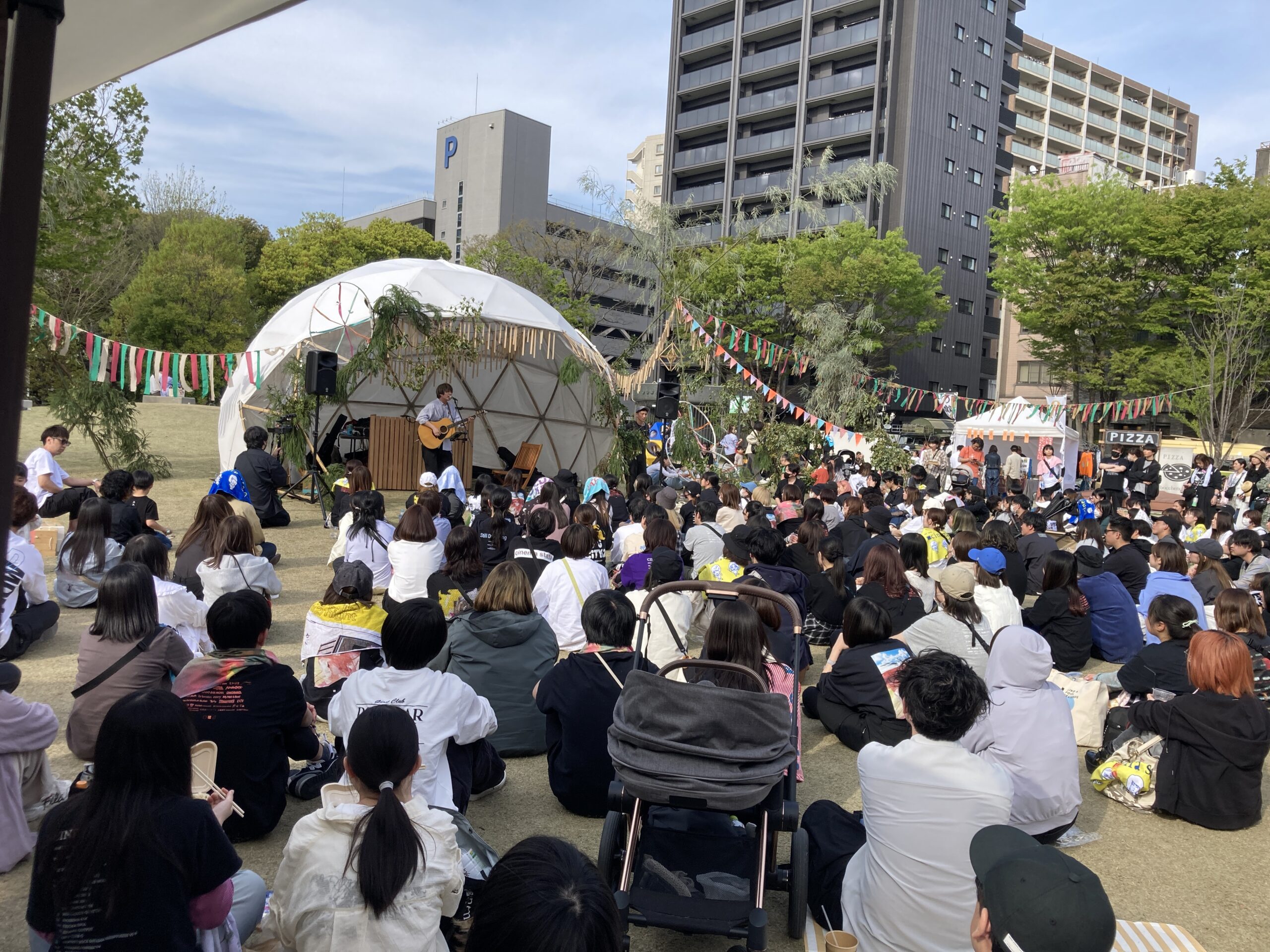 周辺には大きな商業施設や飲食店・アパレルショップなどがたくさんあり、イベントの方以外にも、休日をただ公園で過ごしたい家族連れやカップルなども多く見受けられ、地域に根付いたイベントとして町の人々にすっかり浸透しているように感じました。