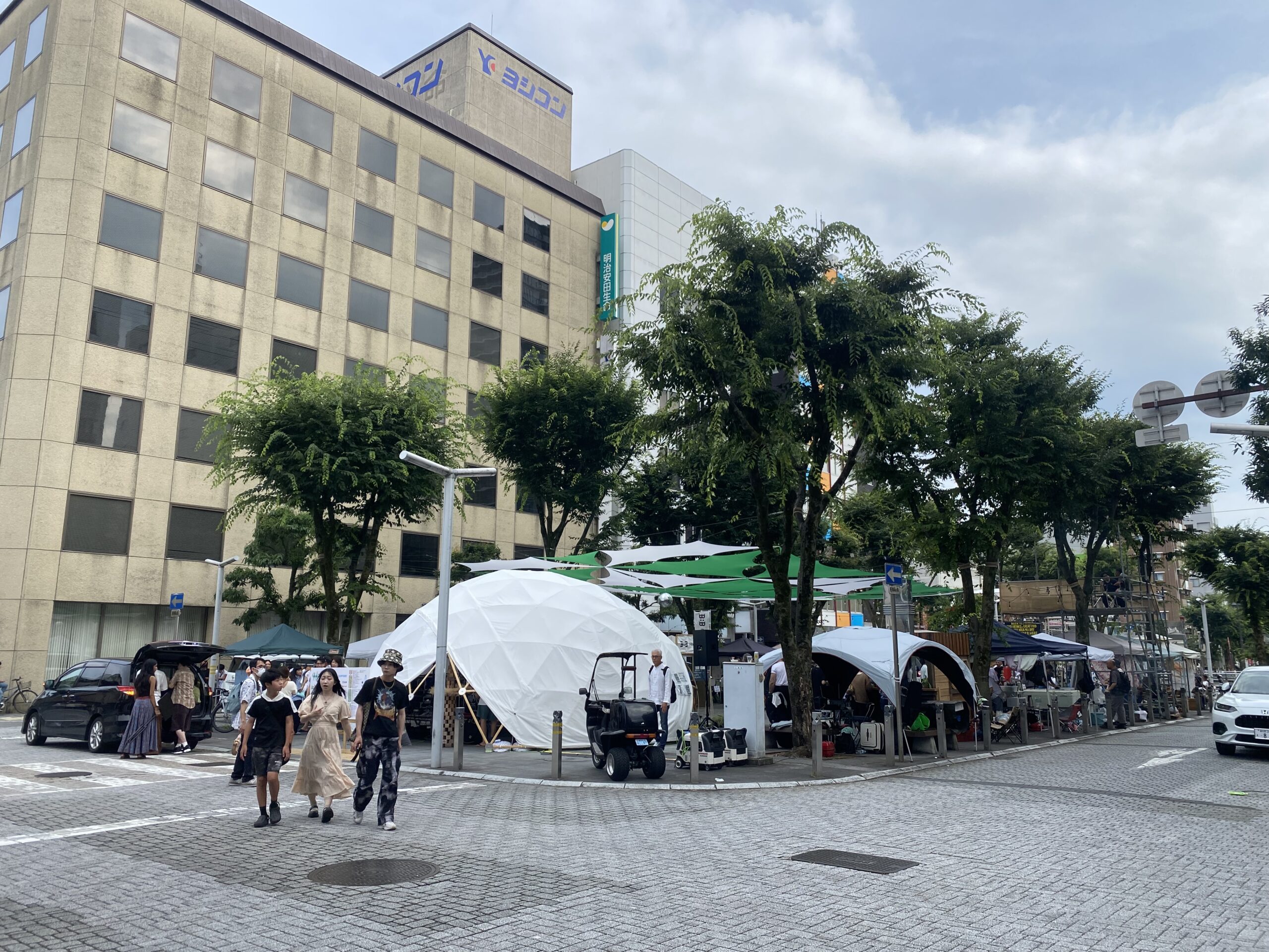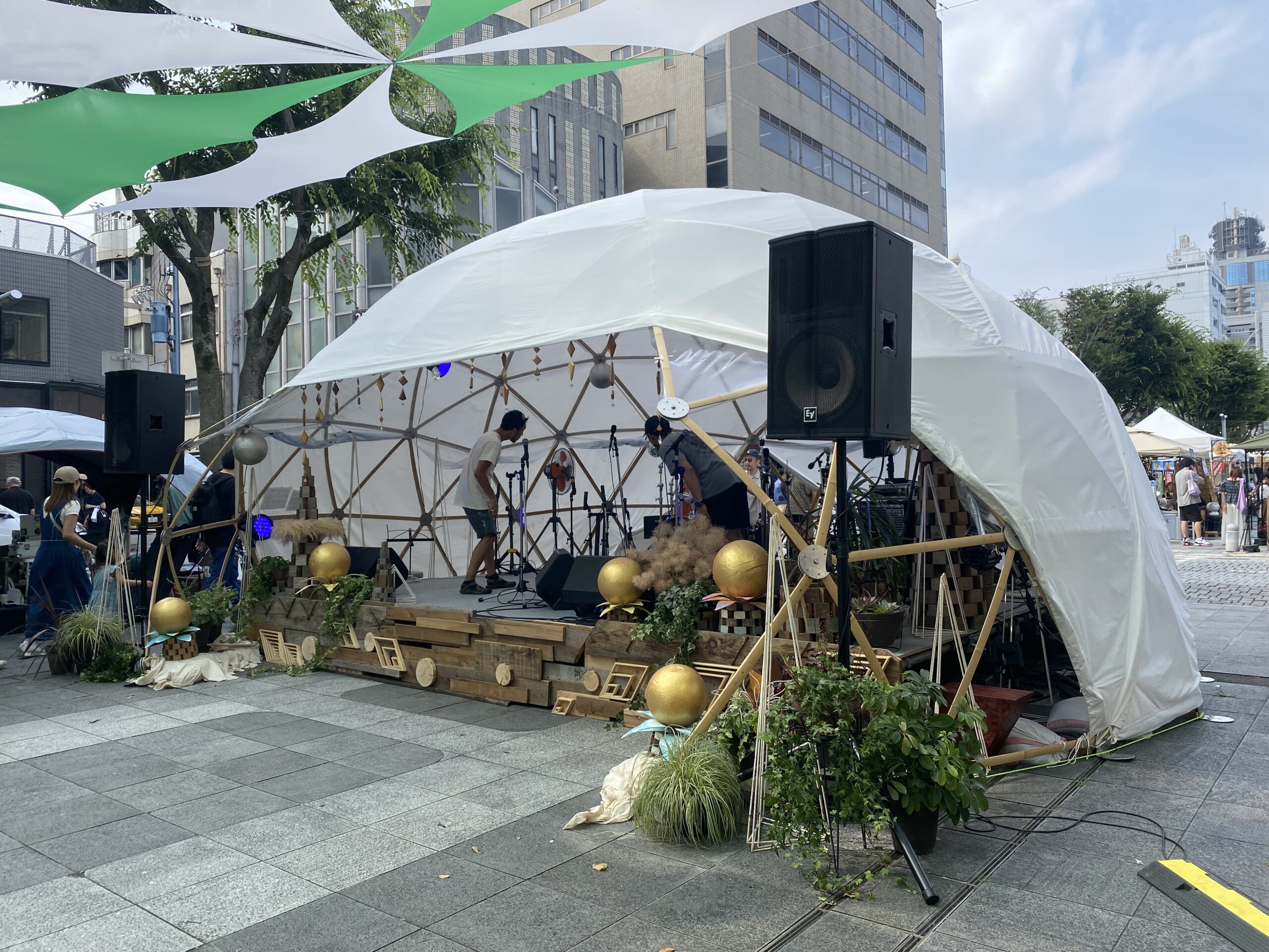 去年、一昨年と2023年以降、7.2mドームをステージで使っていただいているこのイベントですが、これまでは同じ静岡市内でも隣町の東静岡アート&スポーツヒロバで開催されてきましたが、こちらの場所が今年から使えなくなったとの事で、今年は静岡駅からも徒歩圏内の青葉シンボルロードでの開催となりました。