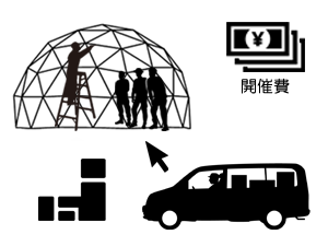 ・弊社のスケジュールの都合(ダブルブッキング等)で、弊社スタッフが現場に出向や滞在できない状況時において、弊社スタッフの代行者として設営・撤去サービスを行い、弊社から報酬を得る事ができる。